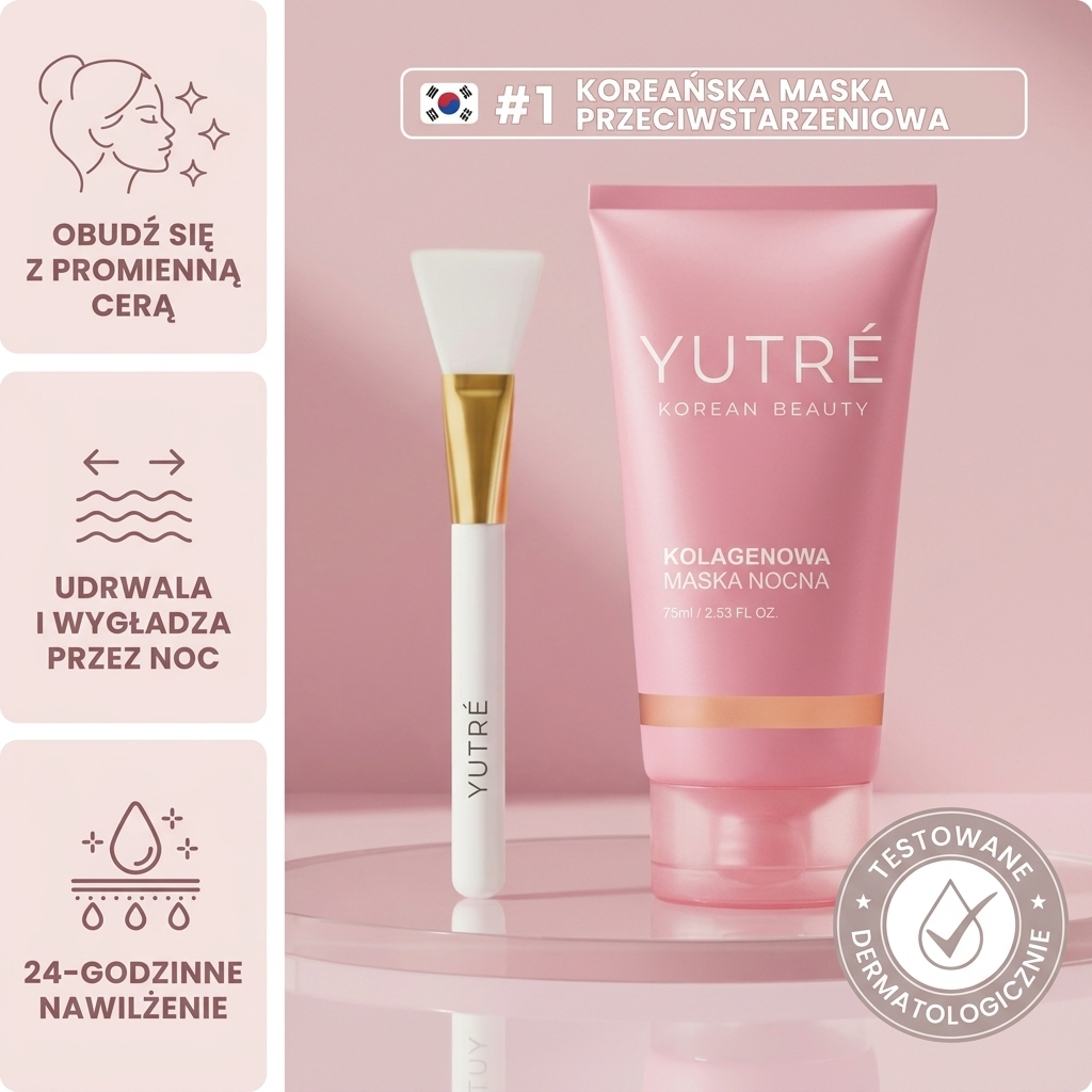Dlatego stworzyliśmy YUTRÉ Koreańską Maskę Nawilżającą — nocny zabieg, który pracuje podczas snu. Przywraca jędrność, rozjaśnia zmęczoną skórę i nawilża od wewnątrz. Rano budzisz się z twarzą gładszą, bardziej promienną i pełną życia.